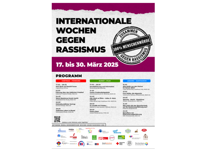 Anlässlich des internationalen Tags gegen Rassismus am 21. März 2025 finden verschiedene Veranstaltung gegen Rassismus in Rheda-Wiedenbrück statt.