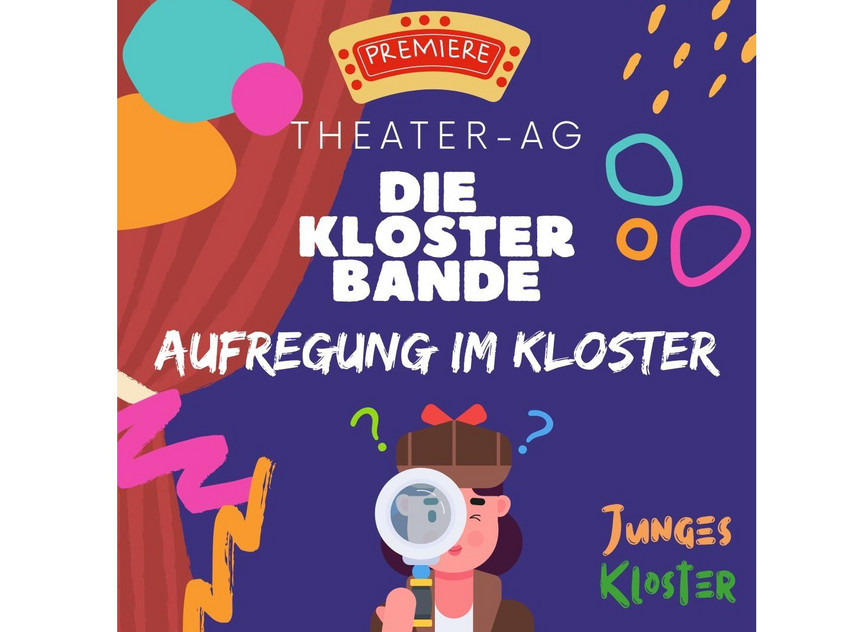 Die Kinder der neu gegründeten Theater-AG DIE KLOSTERBANDE präsentiert mit viel Vorfreude und Aufregung ihr erstes Theaterstück „Aufregung im Kloster”. Ein halbes Jahr haben sie das Stück selbst entwickelt und viel geprobt. Nun freuen sie sich darauf, ihr Theaterstück vielen Zuschauerinnen und Zuschauern zu zeigen.
