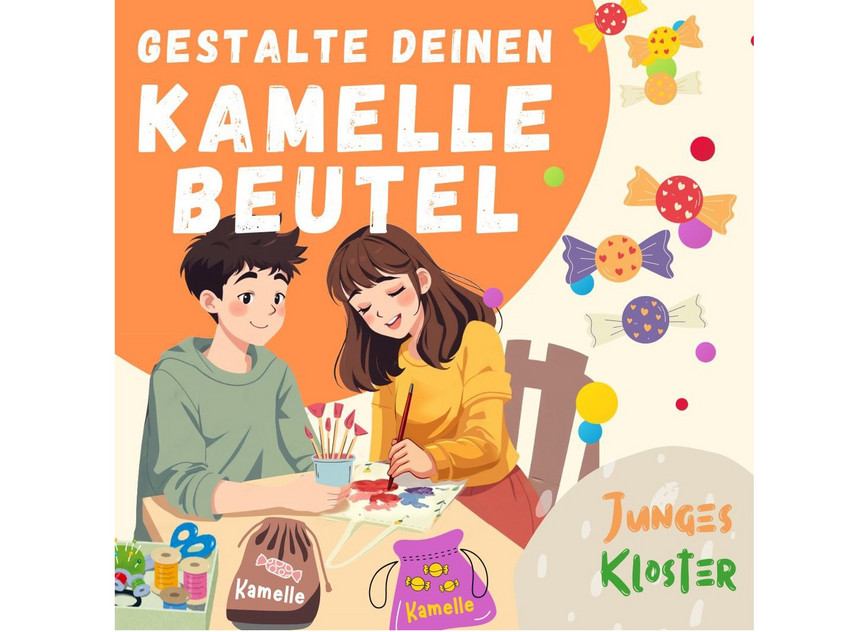 Beim Workshop „Gestalte deinen Kamellebeutel“ sind alle Kinder ab 5 Jahren zum Mitmachen eingeladen. Während du bastelst, können deine Lieblingserwachsenen das Kloster Wiedenbrück erkunden – einfach im Anmeldeformular eintragen. Die Klosterführung kostet 5 € pro Person.
