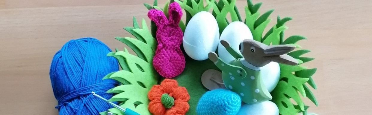 Wir häkeln für den Frühling – vom Osterhasen über Ostereier und Blumen bis hin zum Regenbogen.