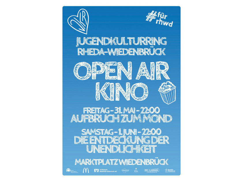 Auch in diesem Jahr darf unser Open Air Kino auf dem Marktplatz in Wiedenbrück auf keinen Fall fehlen. Es ist immer wieder schön, wenn wir Gast auf dem Marktplatz sein dürfen und es ist immer wieder schön zu sehen, wie sich das Open-Air-Kino entwickelt hat. Mittlerweile ist es ein fester Termin im Stadtkalender geworden, wenn wir am ersten Wochenende im Juni die Riesen- Leinwand mitten in der Stadt aufbauen und an zwei Tagen jeweils einen Film unter freiem Himmel zeigen! „Aufbruch zum Mond“ und „Die Entdeckunug der Unendlichkeit“ haben wir diesmal für euch ausgesucht und natürlich ist unser Open Air Kino 2019 ebenfalls wieder kostenlos. An dieser Stelle möchten wir uns bei unseren Sponsoren bedanken, die dies ermöglichen! Los geht es jeweils mit Einbruch der Dunkelheit ca. 22:00 Uhr.